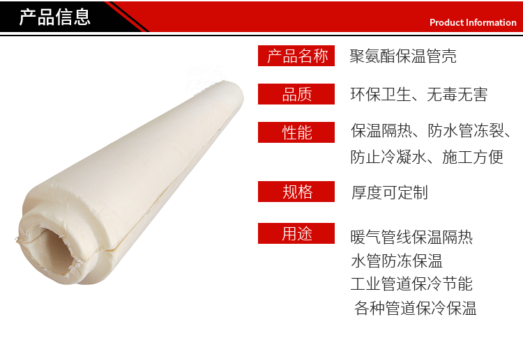 硬质聚氨酯泡沫保温管壳阻燃高密度PUR保冷管壳暖气管道保温材料定制内径60*30mm厚*1米
