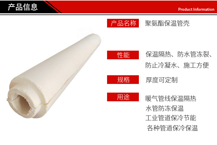 硬质聚氨酯泡沫保温管壳阻燃高密度PUR保冷管壳暖气管道保温材料定制内径60*30mm厚*1米